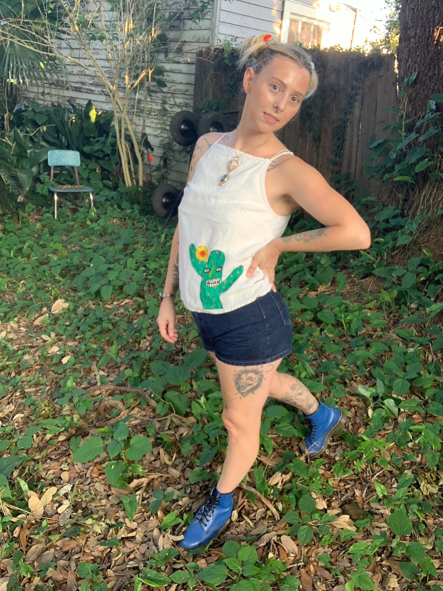 This small linen tank with a little cactus friend will have you looking cute out there. A lot of work went into this goofy cactus applique. You'll be stylish and have a little bit of fun knowing you got your wardrobe game from Nopalito. Plus, cacti are practically maintenance free!