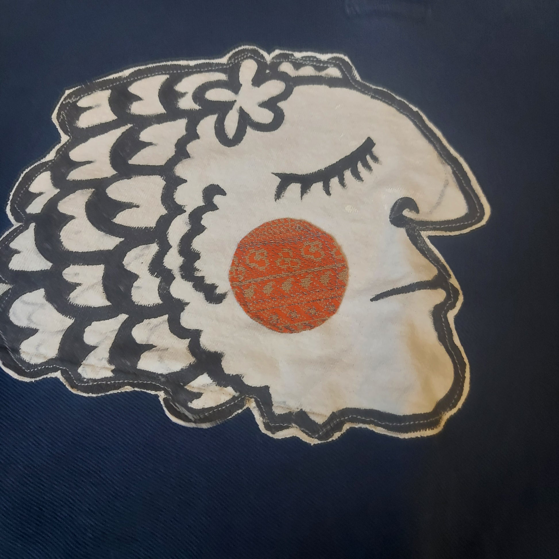 The Dream Bird XL polo features a stylish blue design and a unique dream man applique.