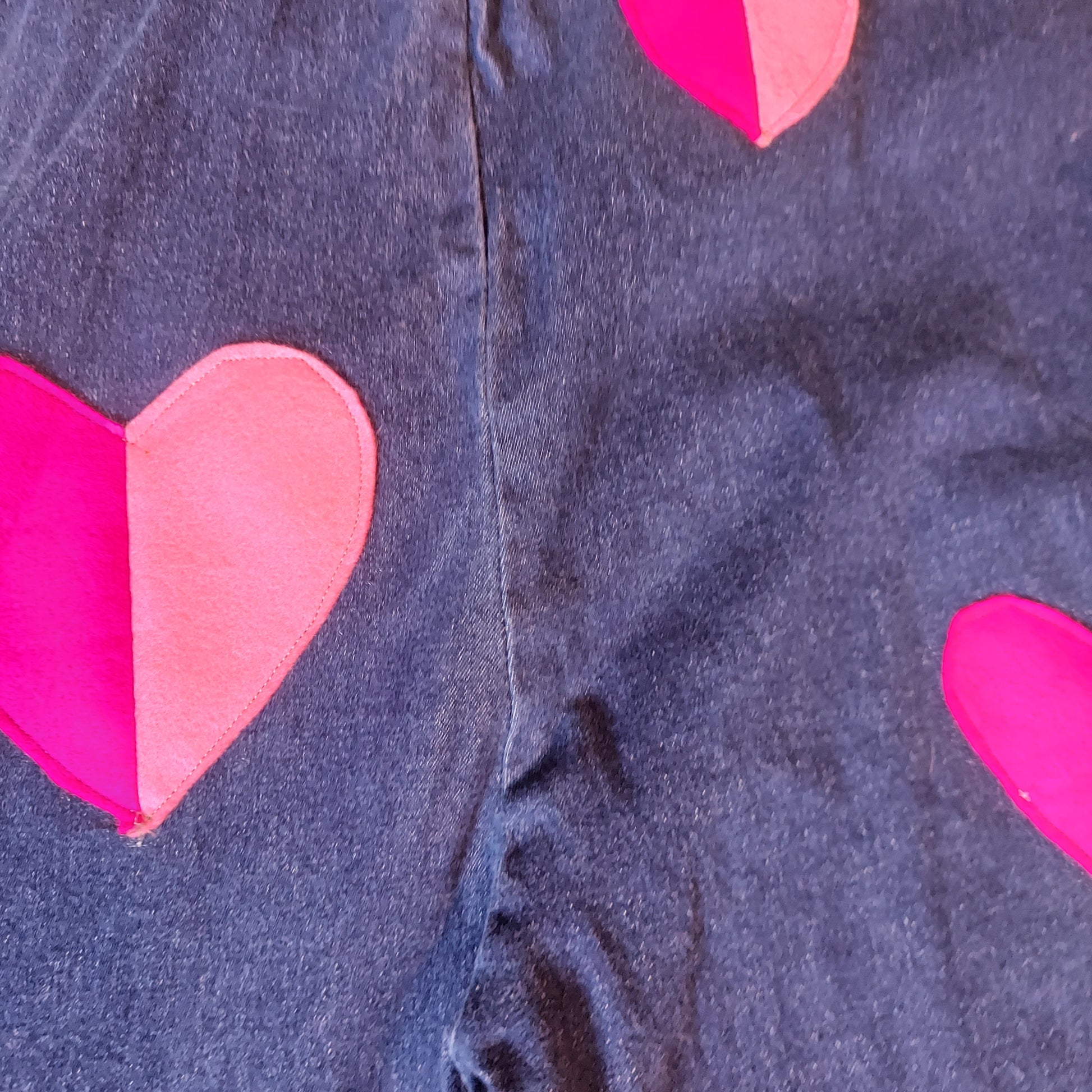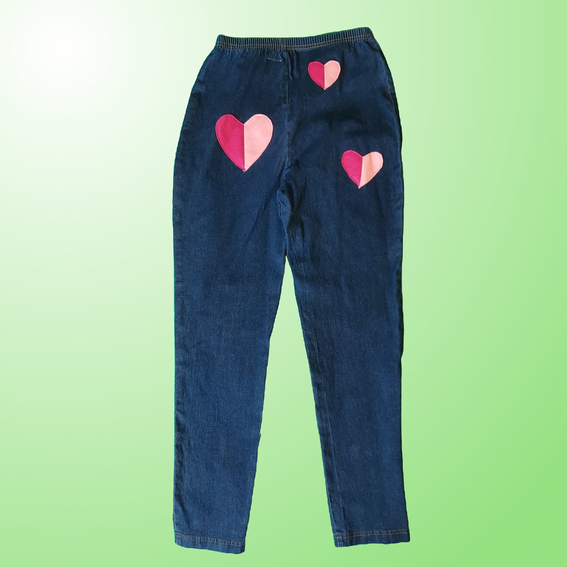 The medium pants, capable to stretch to a larger waste, have three heart appliques on the back.