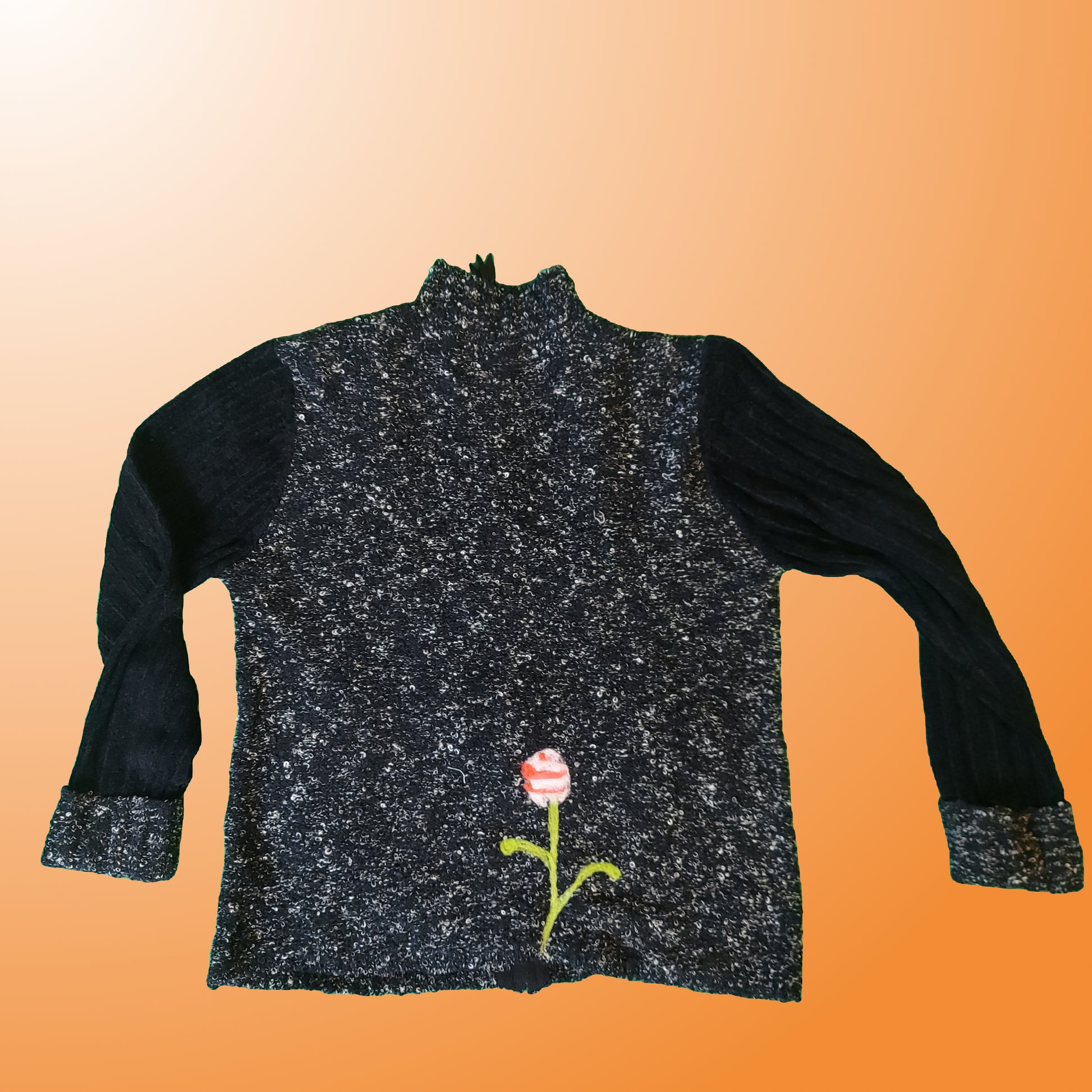 Small - medium, cotton knit sweater with a wool felted flower on front an back