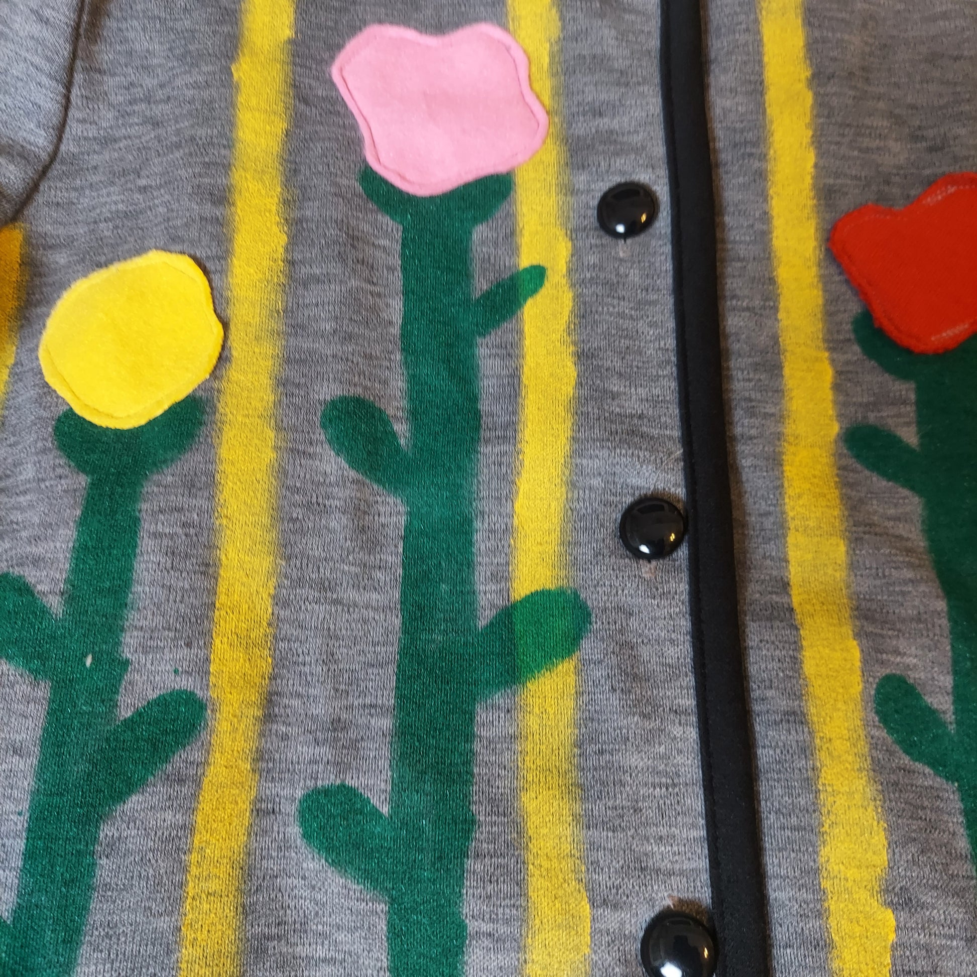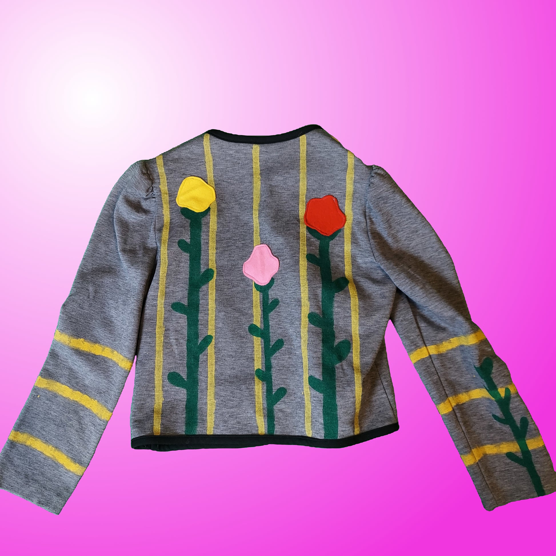 Appliques flowers and hand painted design on both front and back of this medium jacket