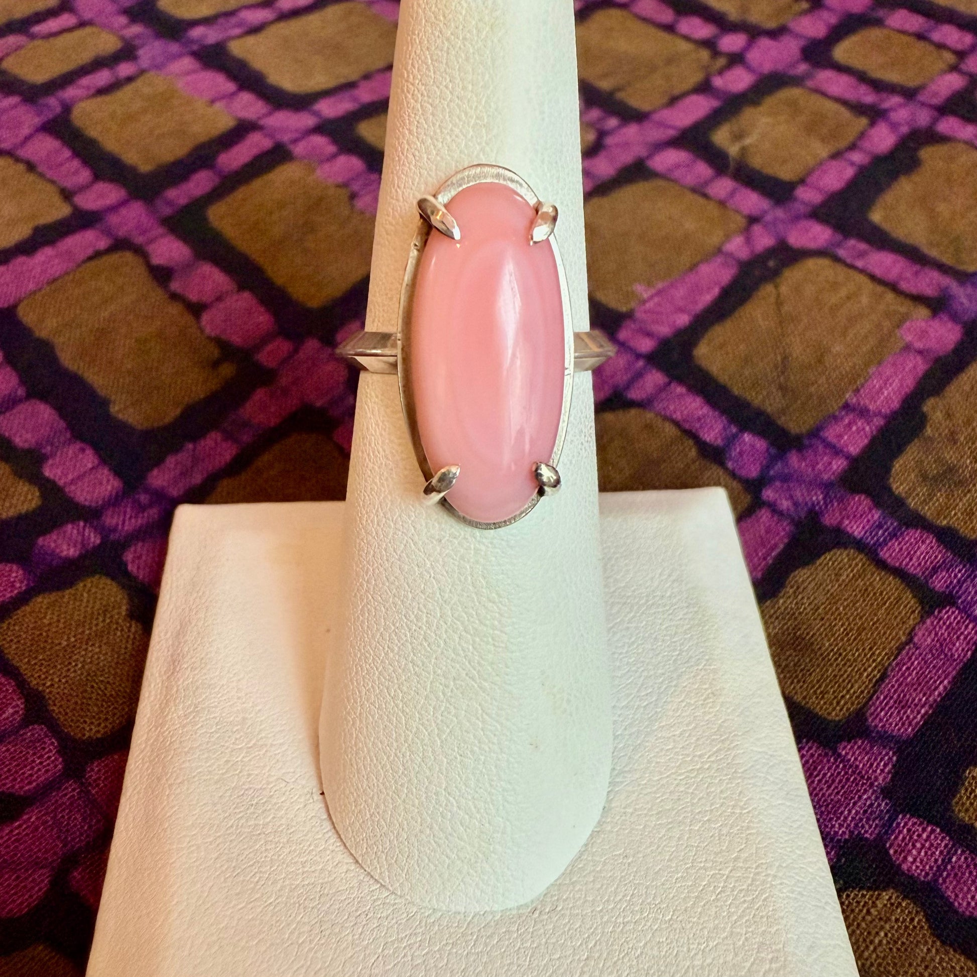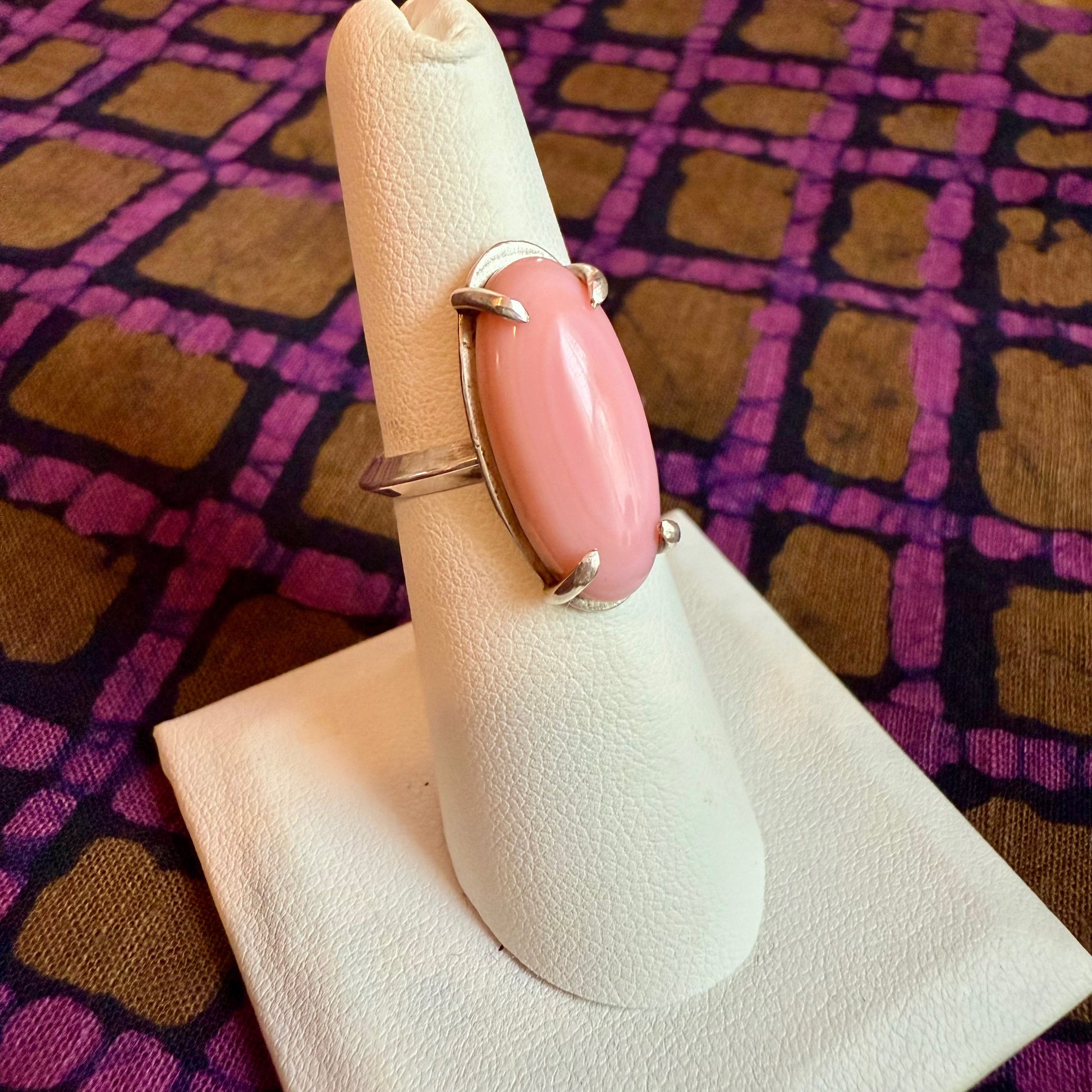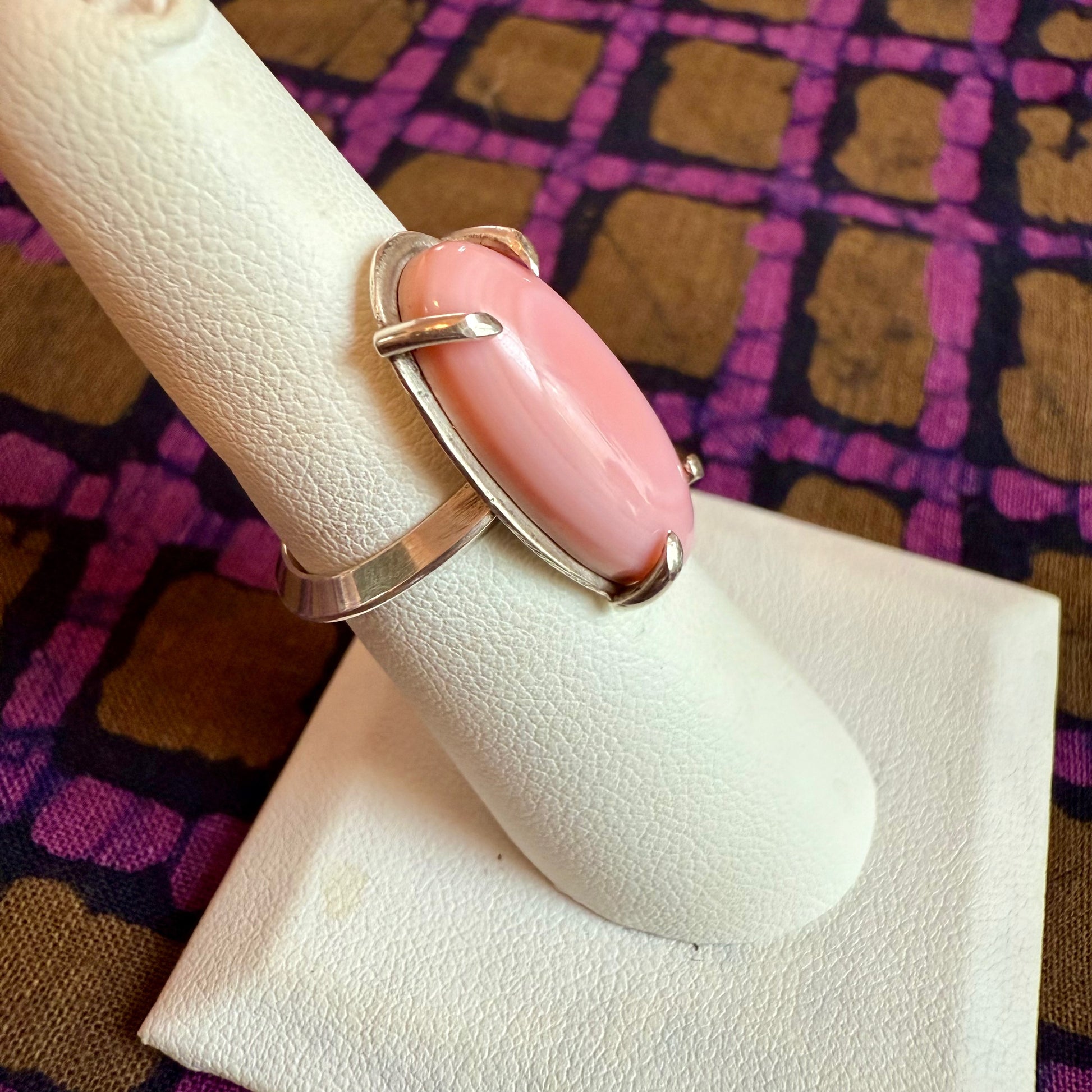 Made with a conch shell cabochon, prong-set in sterling silver. Measures 12 mm x 24mm.