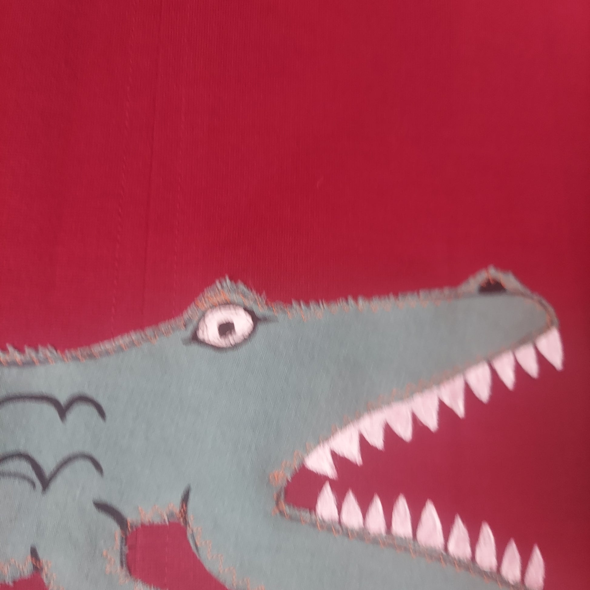 Make a statement with this burgundy skirt where a colossal gator lounges across the fabric like it owns the place. The Size 10.