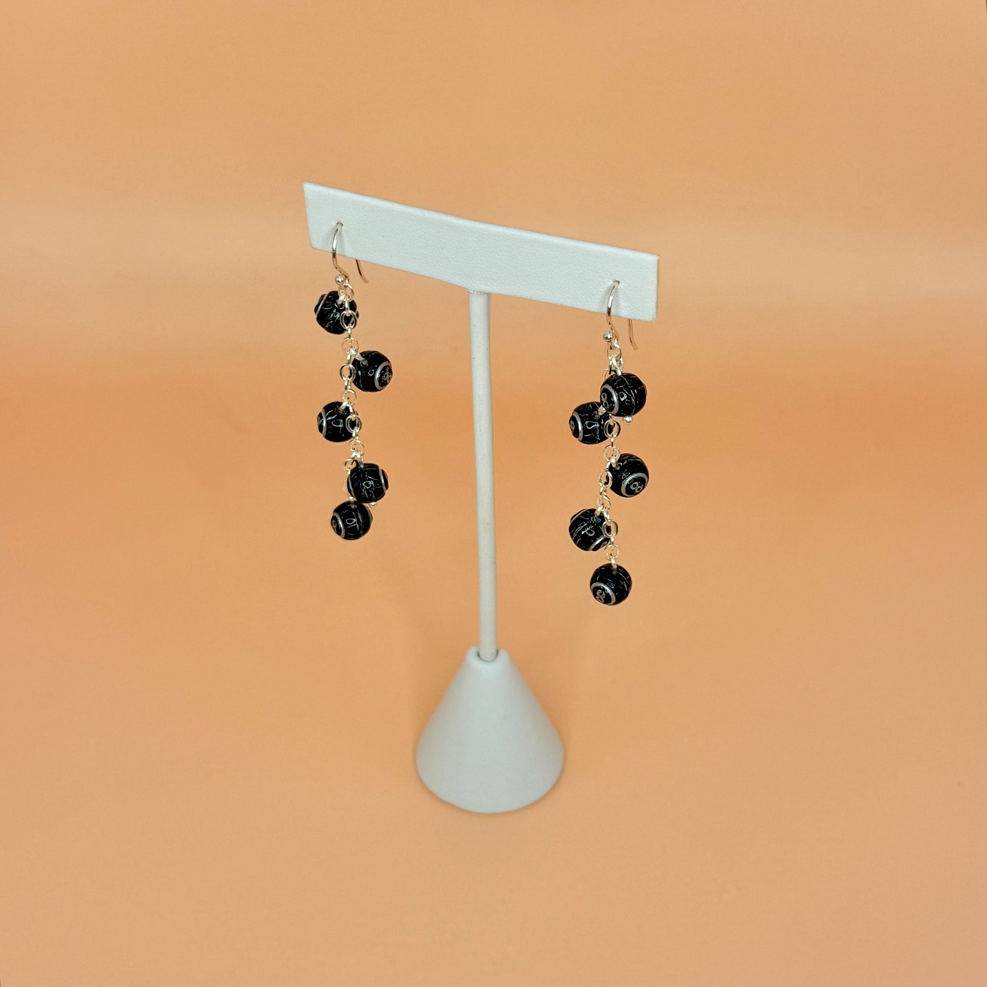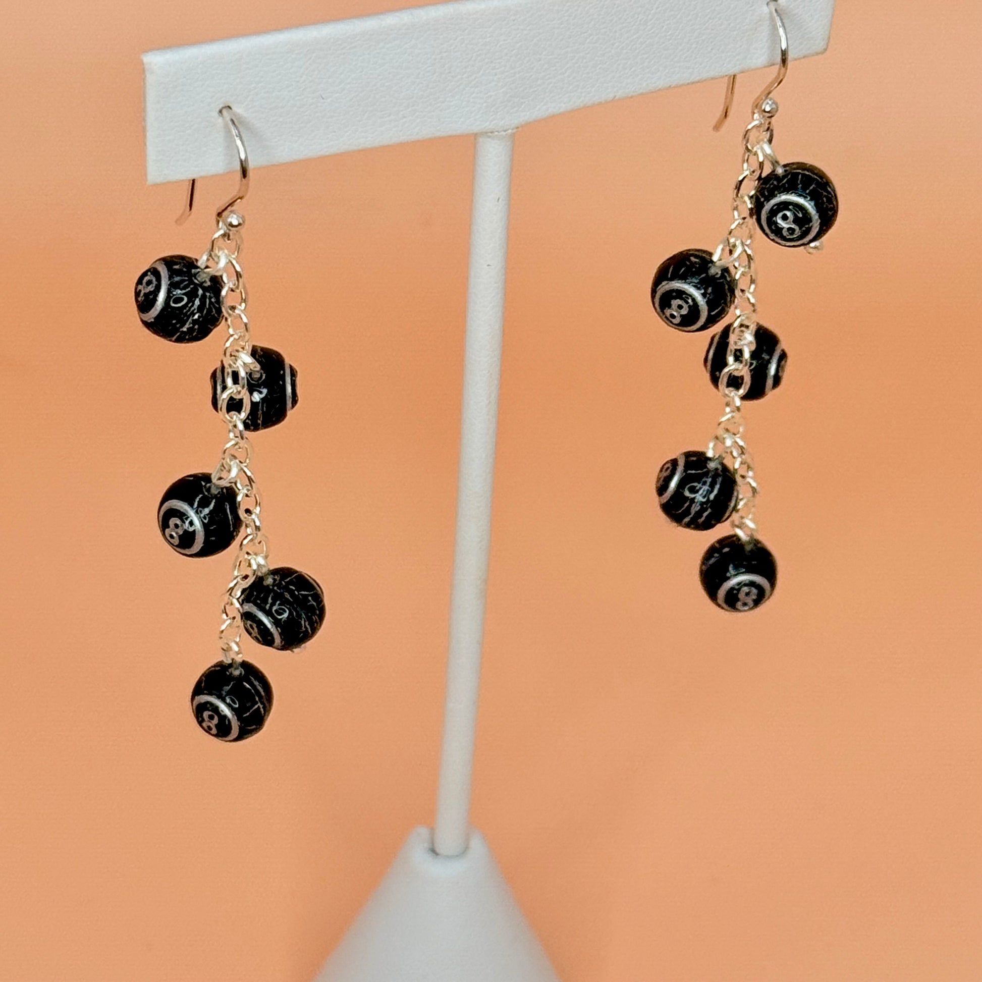 The perfect gift for your favorite pool shark :) Sterling silver and vintage Czech glass 8 ball beads. 2.25" drop.