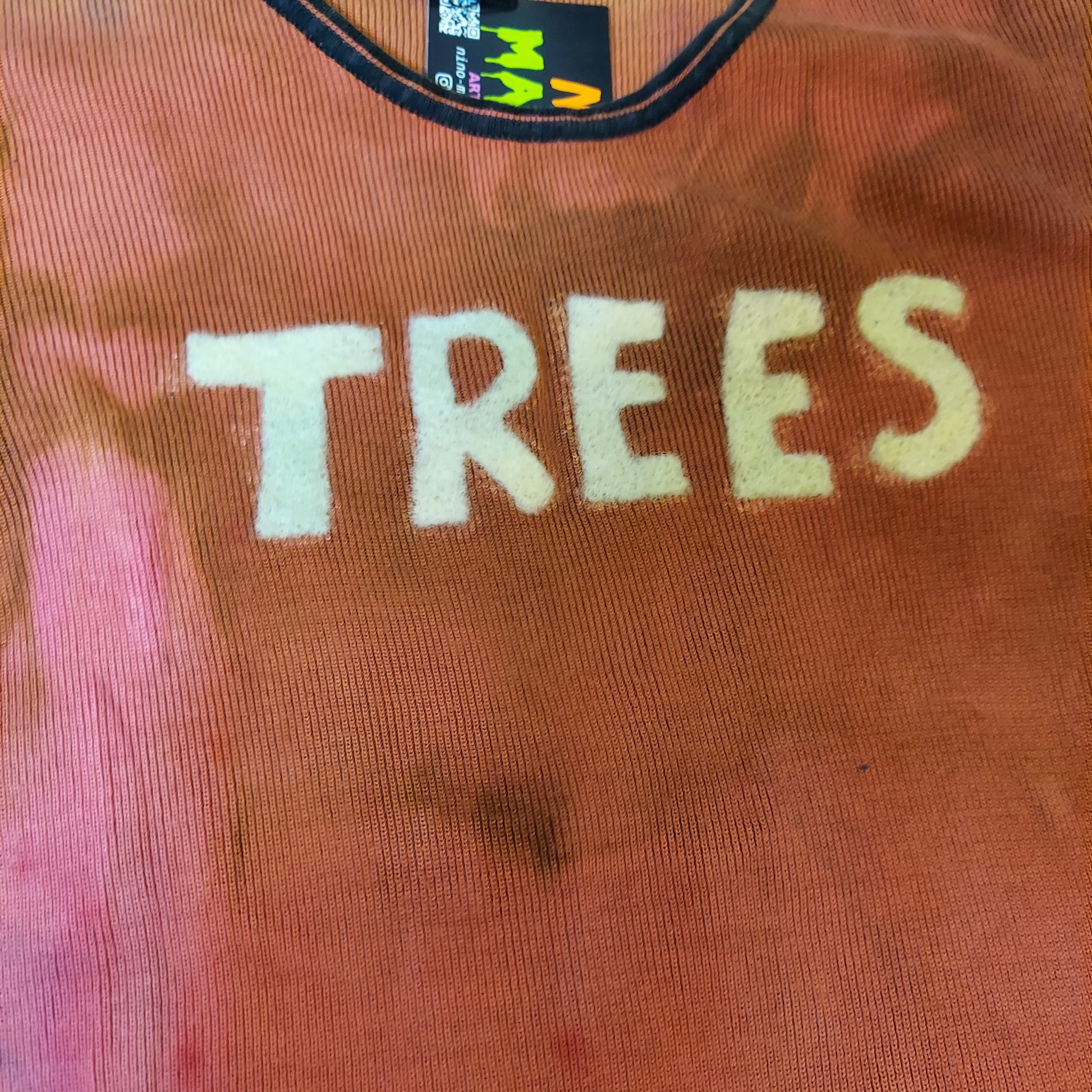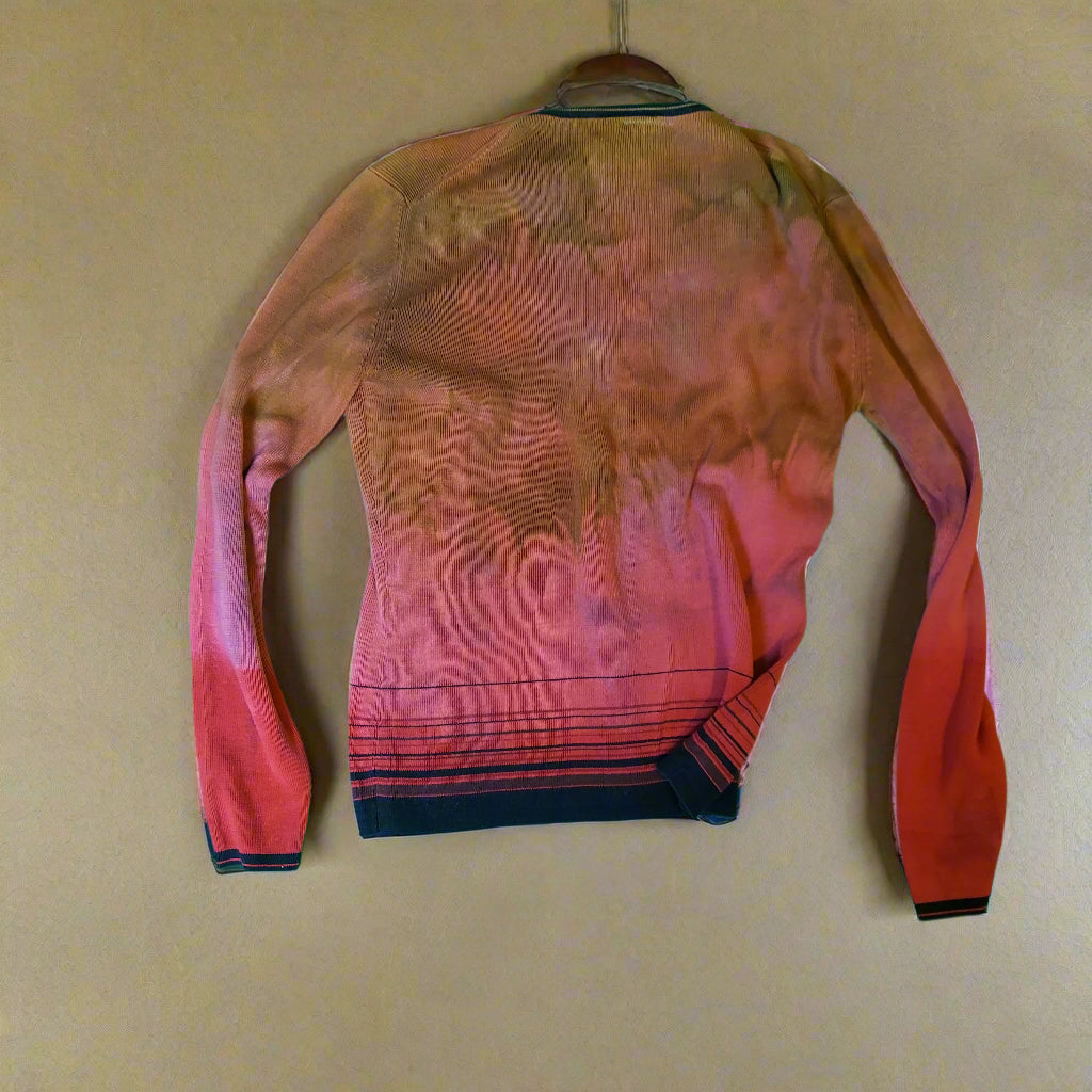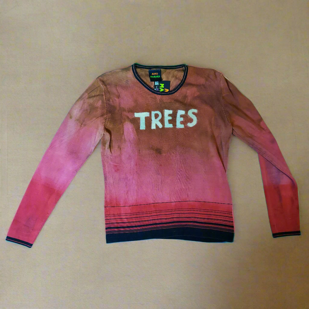 This medium-sized Hand Dyed Sweater features a unique "Trees" embroidery and should be washed with similar colors initially.