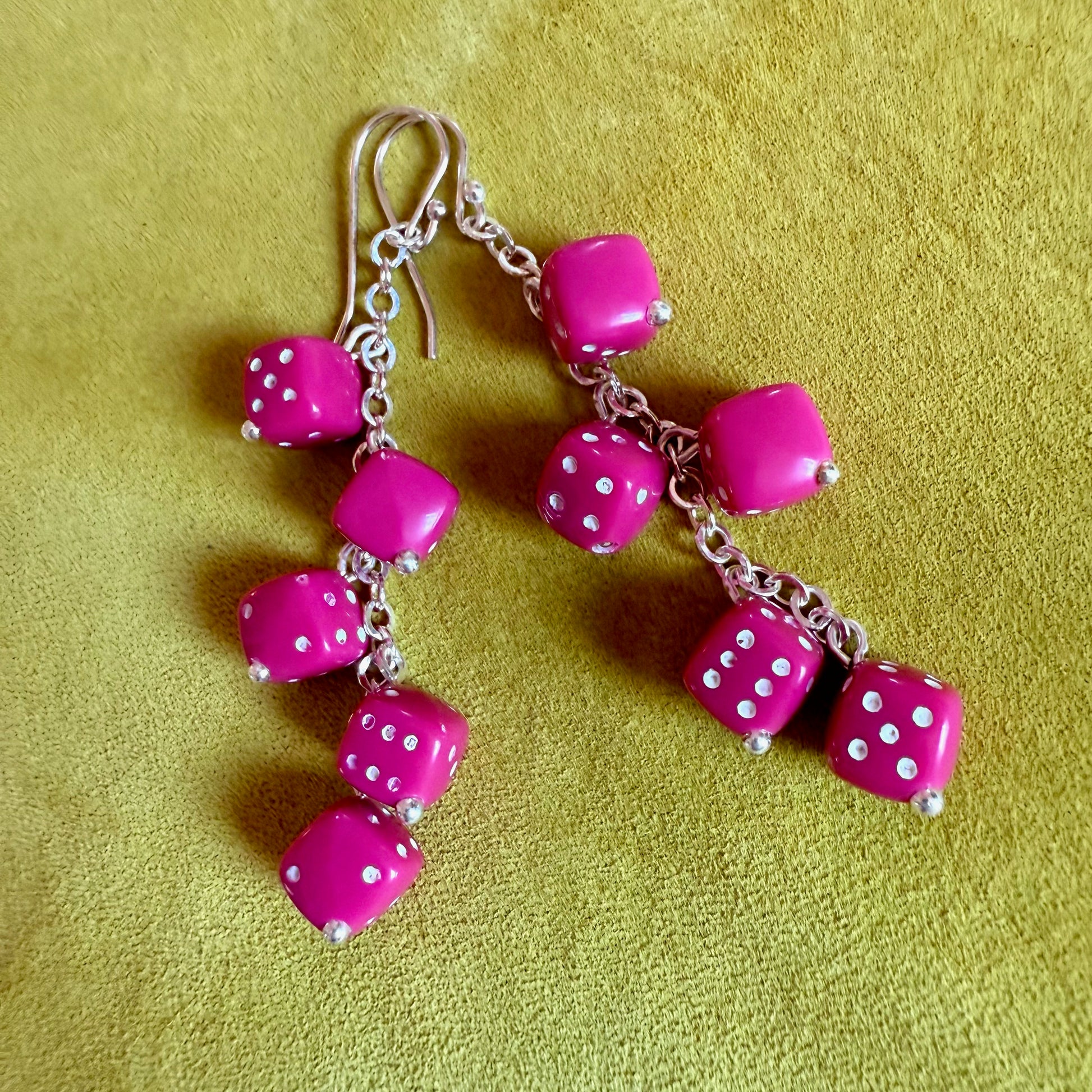 Sterling silver and vintage glass dice beads. 2.5" drop.
